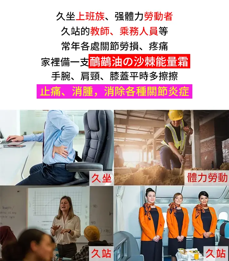 鴯鶓油精油可以同時適用風濕關節炎和骨關節炎,自然療法治療緩解類風濕症狀,既安全又有效。關節疼痛時,您會怎麼止痛?吃消炎藥、貼止痛藥膏,還是嘗試高麗菜包敷法?或許,您還有一個新選擇——鴯鶓油-沙棘能量霜!治療的目標為改善疼痛狀況、消炎止痛、維持或增進關節活動能力、增進生活品質。